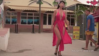 Cette asiatique pulpeuse se promène nue en dessous de sa robe légère