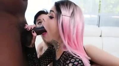 Deux salopes tatouées baisent avec un black bien baraqué...