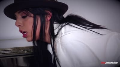 Gina Valentina chaude et sexy en mode décontractée charme un amie à la maison avant de se laisser baiser avec fureur, finissant par une éjac sur la bouche.