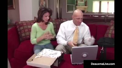 La femme en manque baise avec le représentant commercial venu la visiter !