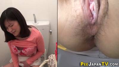 La jolie japonaise se branle sa chatte baveuse aux toilettes