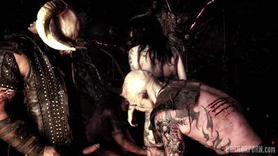 Ces pornstars rampent jusqu'au fin fond de l'enfer, pour une baise infernale. Une orgie pleine de belles femmes et de monstres qui bandent.