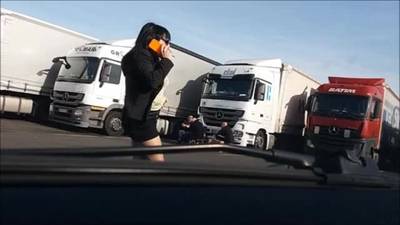 Sa mini-jupe laisse entrevoir sa chatte !!!